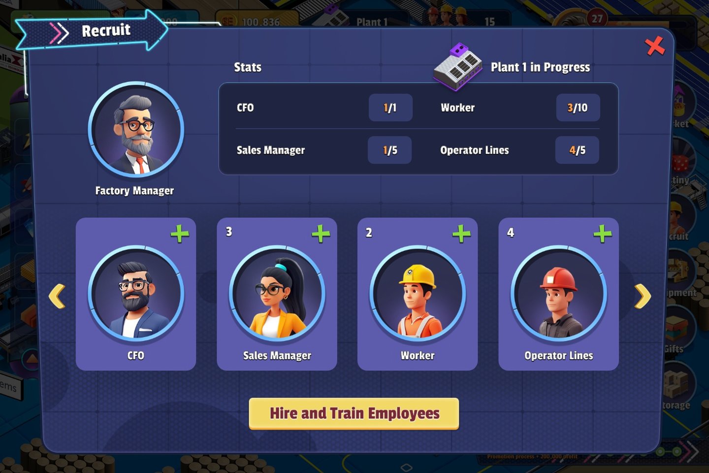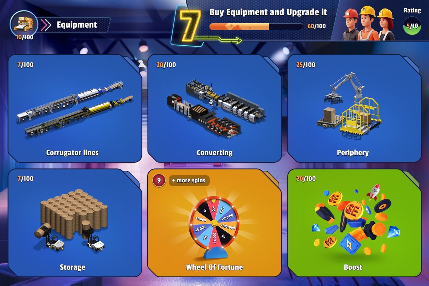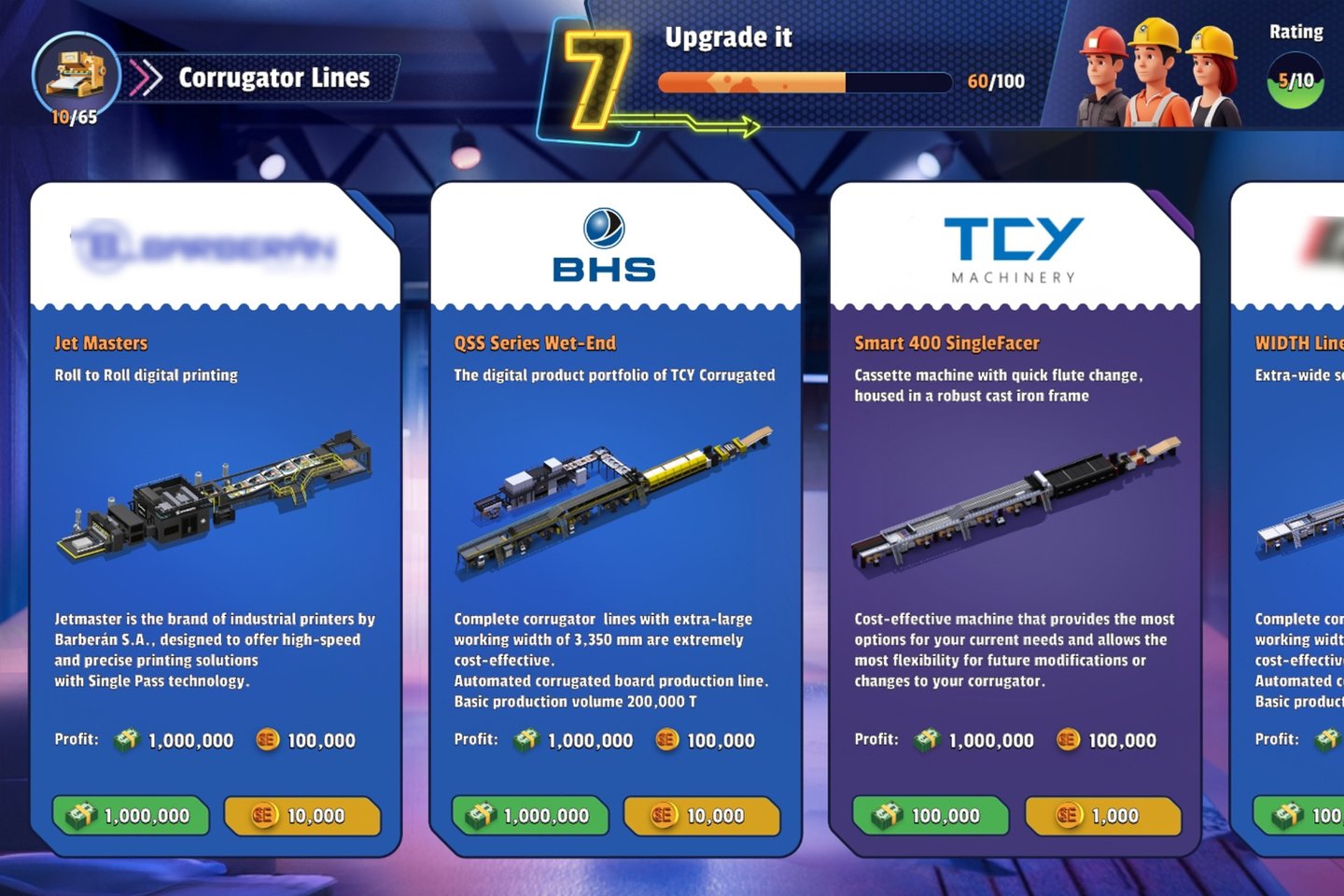 Equipment Upgrades: Players can purchase your state-of-the-art machines to improve efficiency, reduce waste, and boost production capacity.